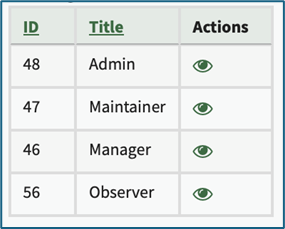 The Module levels tab shows the different module levels for the Assets Module and the default permissions that granted to each module level. The eye widget under the “Actions” column opens a modal that allows the user to view the permissions granted to the users with that role.