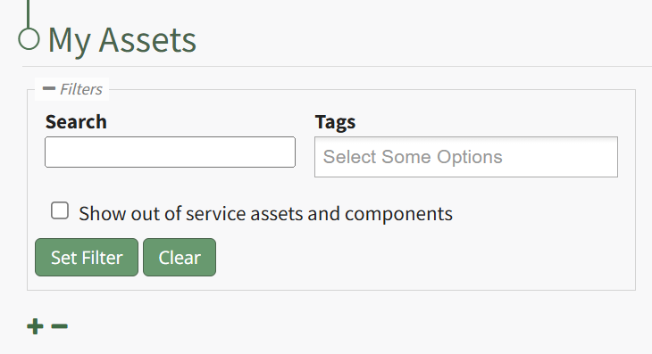 The Choose Asset Modal will prompt you to identify which asset you want to log data for. Click the bulleted list icon to access your assets. Selecting the plus sign “+” icon will expand the components within the Asset.