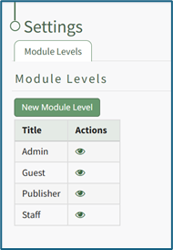 “Settings” within the Courses Module directs the user to “Module Levels” page where module level permissions for the Courses Module can be customized.