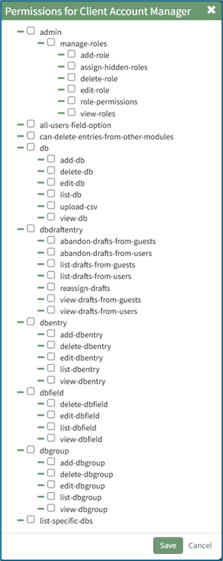Manage Entry Permissions gives the indicated users permission to view, add, edit, and delete database entries.