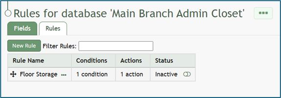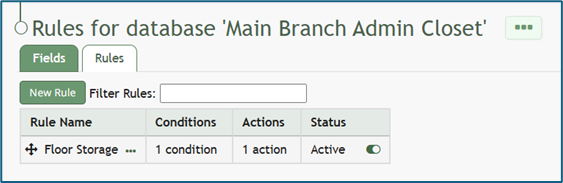 Click the three dot (…) icon to the right of the database you want to edit to open the context menu. Select “Rules” opening the Rules Tab that contains the Rules Table.