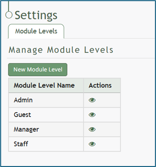 The new module level will now show in the module level table on the Settings Page. Module levels created by your organizations can be customized.