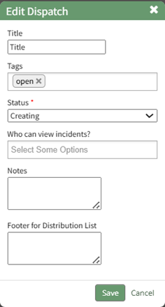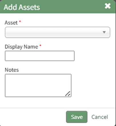 Assets | Assets can be added to the dispatch details page. How To: Add Assets to a DispatchTo add assets to a dispatch, open the specific dispatch you wish to. Go to the Dispatch Module Home Page and alter the filter view as needed. Click the Dispatch Number or Title to open the specific dispatch details page. Assets can be added to a dispatch by selecting the plus sign icon to the right of the Assets column header. Selecting the plus sign icon opens the Add Assets Modal. Select the asset you wish to add to the dispatch from the dropdown menu. Edit the display name if desired. Include any notes relevant to the asset and select the “Save” button. The asset will now show on the Dispatch Details Page. | ||||||||||||||||||||||||||||||||||||||||||||||||