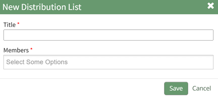 Clicking the New Distribution List button beneath the header opens the New Distribution List Modal which is used in the creation of new pre-defined distribution lists.