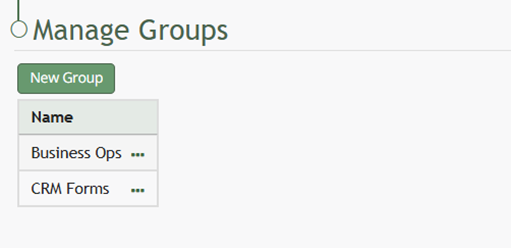 Select “Save” and the new group will now show in the Form Groups Table on the Manage Groups Page.