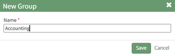 Select the “New Group” button opening the New Group Modal. Input the name of the new group.
