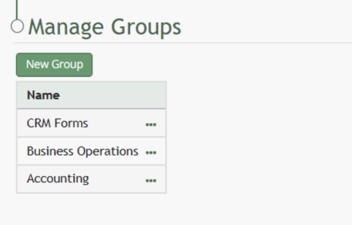 To add a group in the Forms Module, select Groups on the Main Menu and go to the Manage Groups Page in the Forms Module.