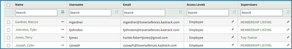 A second way to edit a user’s access levels is from the Active Accounts Table (if the Access Level column is included on the Active Accounts Table, which can be customized).