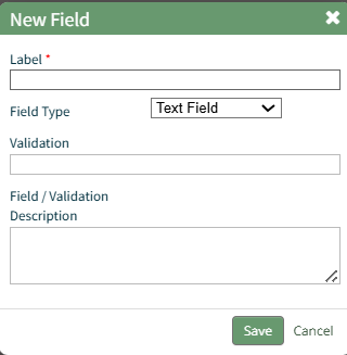 Input a label for the field and select the field type from a dropdown menu. Options include: text field, number, password field, text box, date field, and checkbox.