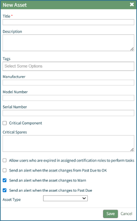 The “Send an alert when the asset changes to Past Due” checkbox will send an alert via email to all users assigned to the asset when the task status changes to past due (red).