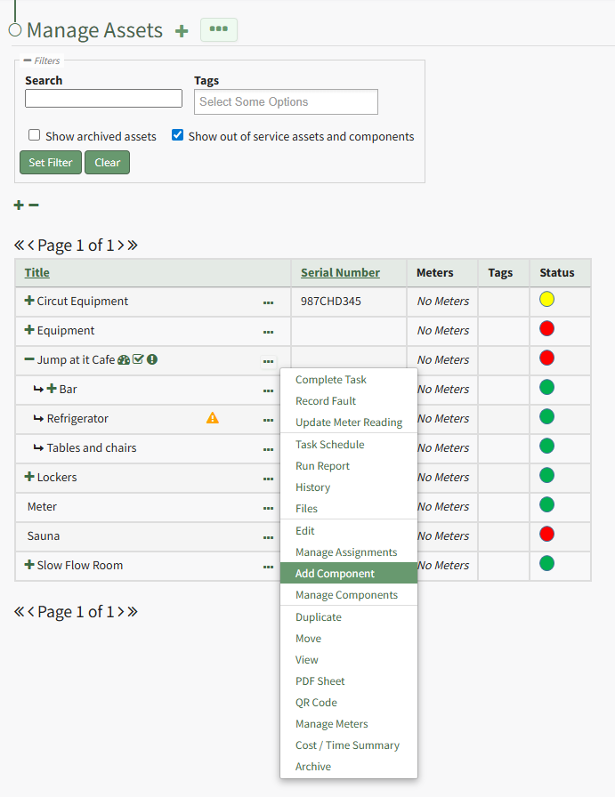 Select the “Save” button and the component will appear underneath its asset in the Manage Asset table (if the view is expanded) where it can be managed. Subcomponents/additional child components can also be created for components if desired.