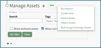 You can also access the New Asset Modal by clicking the three dot (…) icon and selecting “Create Asset” from the context menu.