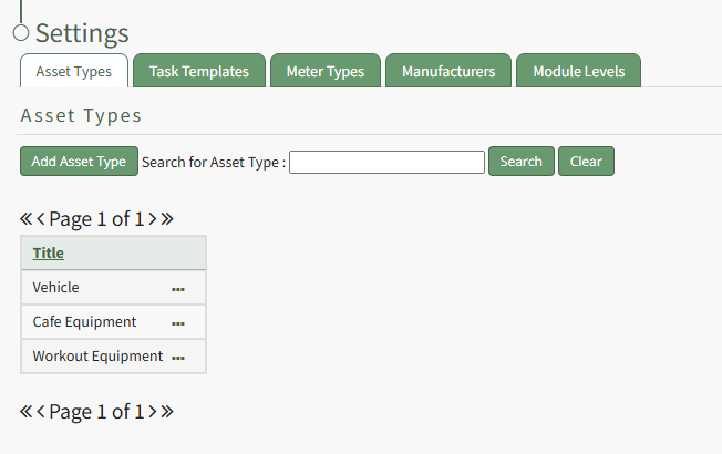 To create a new asset type, open the Asset Types Tab on the Settings Page of the Assets Module.
