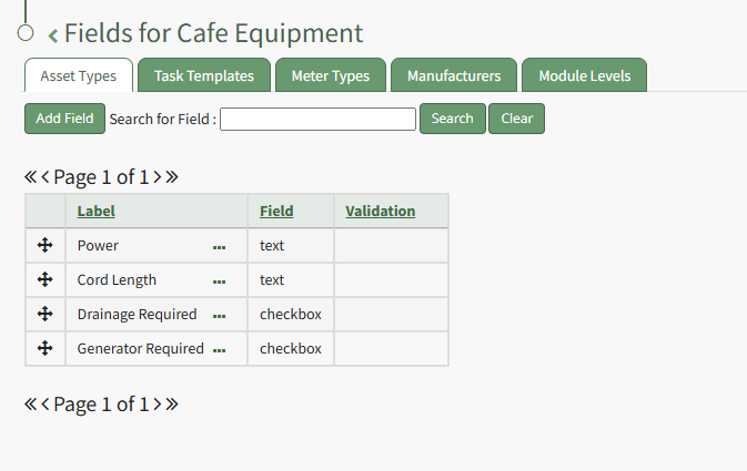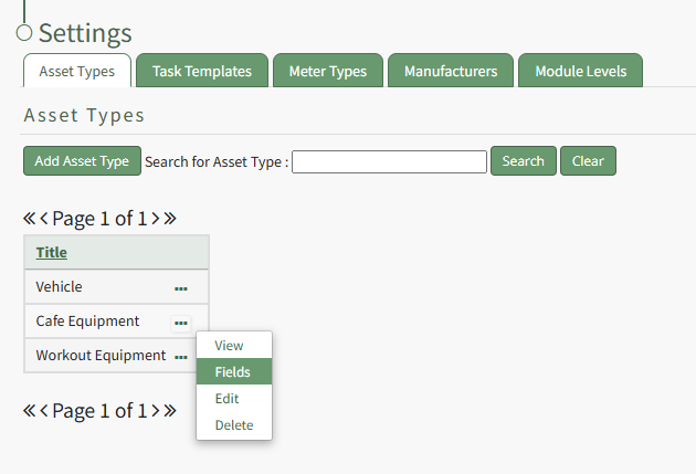 Select "Fields" from the context menu opening the Asset Type Fields Page.