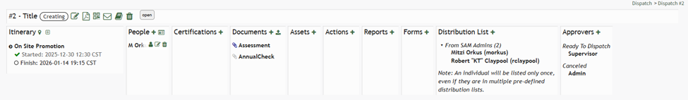 To add form entries in the Dispatch Module, go to the Home Page of the Dispatch Module. Click the ID or Title of the specific dispatch you want to submit a form entry on.