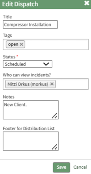 Add the desired notes in the text box and select “Save” returning to the specific dispatch page.