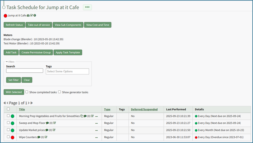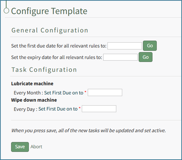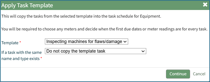 A user will still be required to establish meters, due dates, and meter readings for each individual task in the task template.