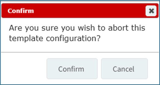 Select “Abort” and a Confirmation Modal opens, stating, “Are you sure you wish to abort this template configuration?”