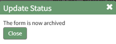 Select “Confirm” and an Update Status Modal appears stating, “The form is now closed.”