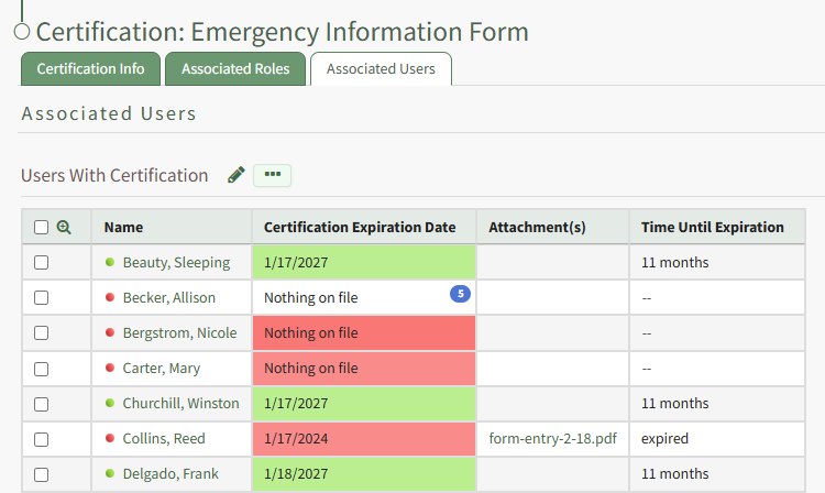 The user will now show in the table. In the required column, you will see "Other Required Certification" instead of an associated certification role.