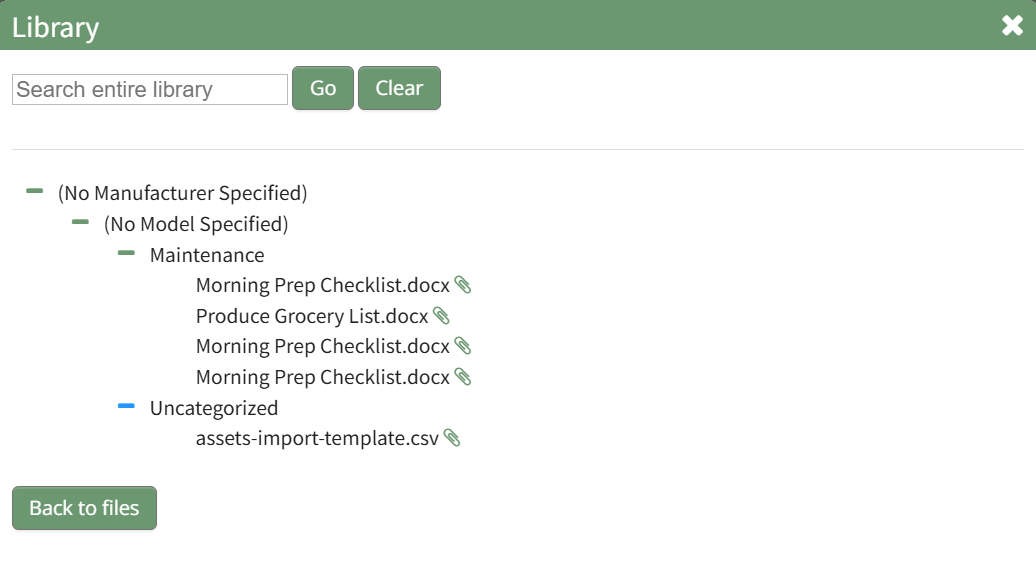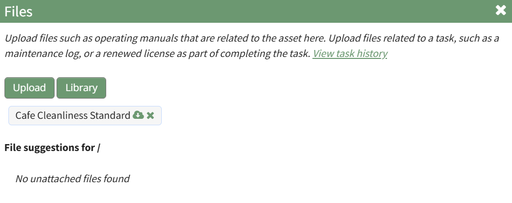 Click the paperclip icon to attach the file to the asset. The new file will now show in the asset's Files Modal.