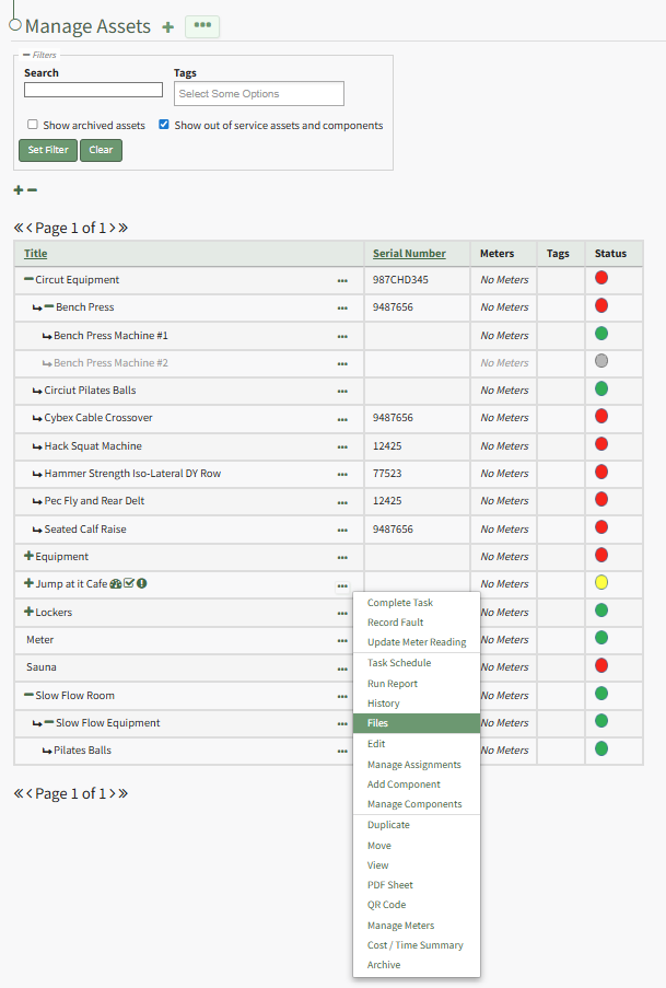 To attach an Asset Module library file to an asset, open the Manage Assets Page in the Assets Module on the Main Menu. Click the three-dot icon to the right of the asset title opening the Asset Management Context Menu.