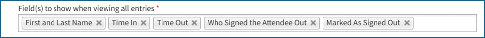 Field(s) to Include on the Display Page | Select the fields you want to be visible on the Display Page. All fields included on the Attendance Log Form will show as Display Page field options. | ||