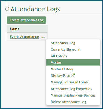 Select the attendance log you wish to initiate muster mode in from the Main Menu (if configured to be shown there) or click the name on the Home Page.