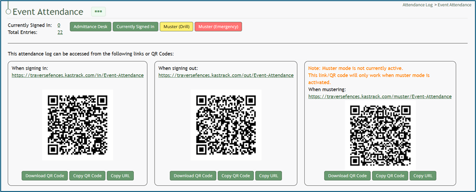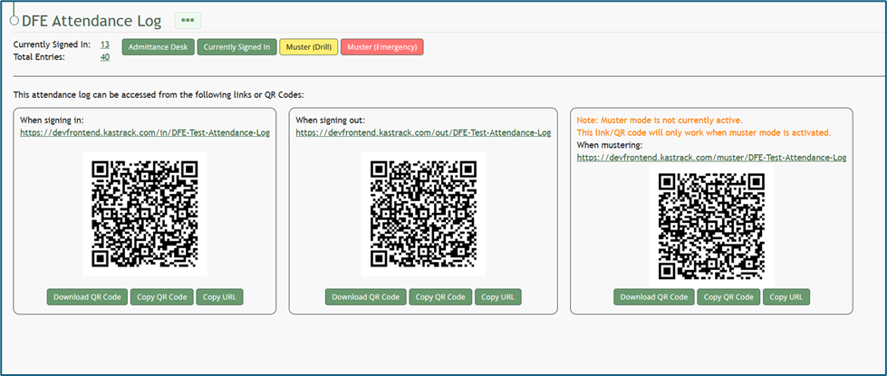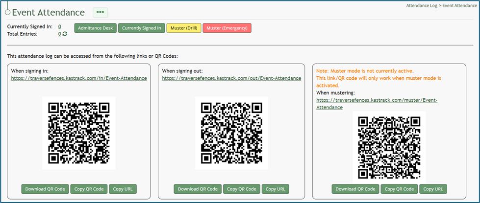 Include the muster QR code | Selecting this checkbox will show the Muster QR Code on the Muster Display Page. | ||