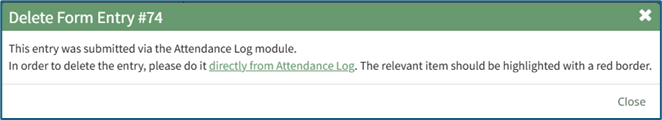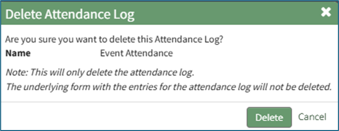 If the associated form was set to public, the public checkbox will automatically be selected on the Edit Attendance Log Modal. If the form was not made public, the attendance log cannot be made public and this option would not be selectable.