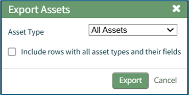 Asset types and unique fields created for specific asset types can be included in the export by selecting the “Include rows with all asset types and their fields” checkbox.