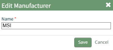 Select "Edit" from the Manufacturers Context Menu opening the Edit Manufacturer Modal.