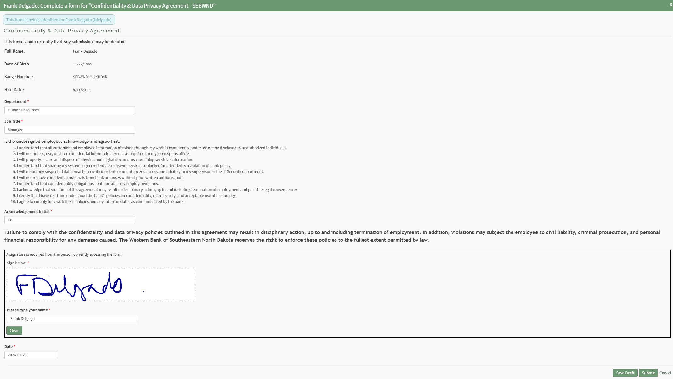 Any Form associated with a required activity has already been created in the Forms Module and Integrated with the People Module. Forms can be customized so that drafts can both be saved as progress is made and submitted from the modal.