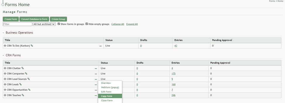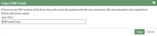 Select “Copy Form” from the context menu opening the Copy (FORM NAME) Modal.