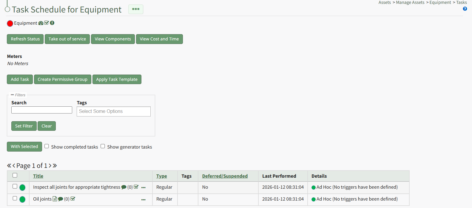 This opens the asset's Task Schedule Page.