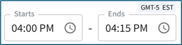 The time zone is indicated above the end time.