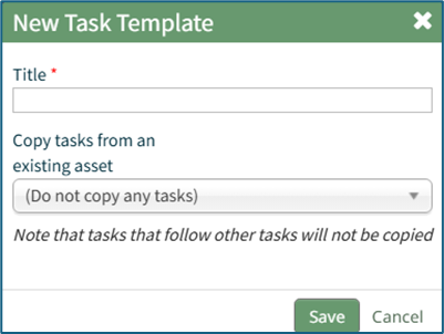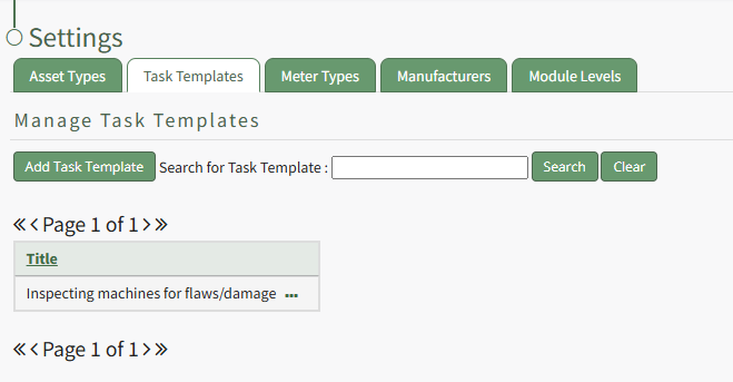 To create a new task schedule template, open the Task Template Tab on the Settings Page in the Assets Module.