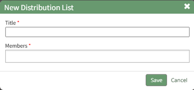 Input the Title of the new distribution list. Clicking the Members field will open a dropdown menu of all Users and Certification Roles that can be added to the Distribution Lists. Multiple selections can be made.