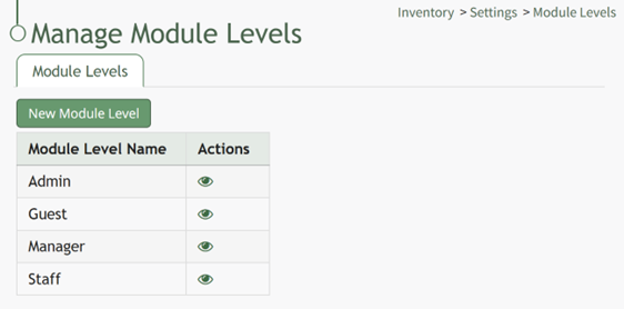 To create a customizable module level in the Inventory Module, go to the Module Level Tab on the Settings Page.