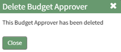 Select the “Close” button and return to the Budget Approver Tab of the Settings Page.