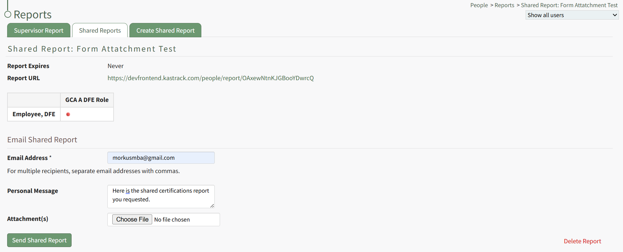 Delete a Shared Certifications Report