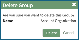 Select “Delete Group” from the context menu opening the Delete Group Confirmation Modal.