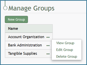 Select the three dot icon to the right of the Group Name you wish to delete, opening the Group Table context menu.