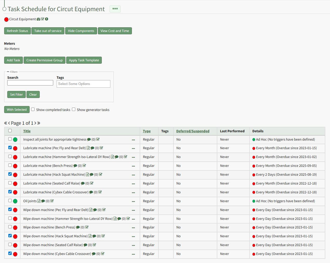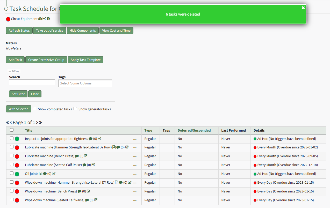 To delete multiple tasks on a task schedule at the same time, open the Task Schedule you wish to edit in the Assets Module.