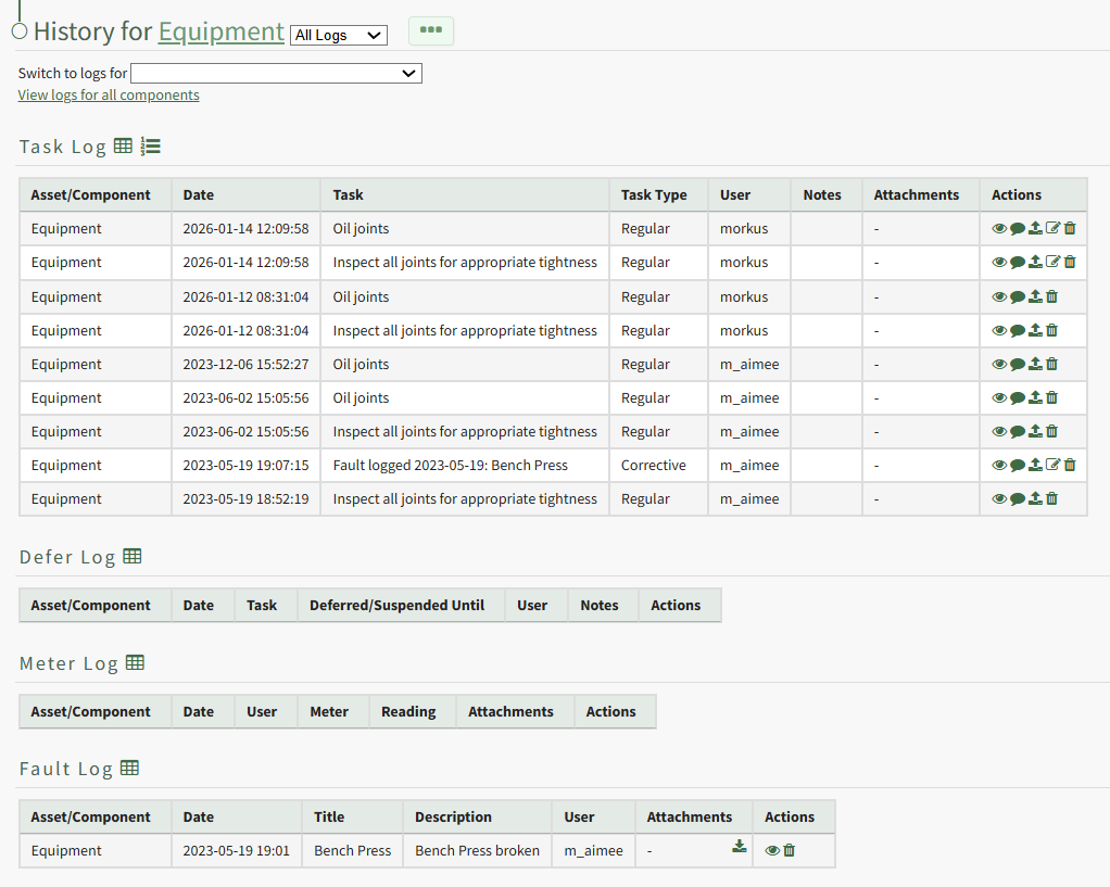 To download attachments associated with historical tasks, open the History Page of the relevant asset.