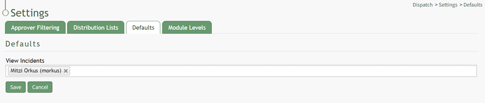 To give individuals, certification roles or access levels the ability to view all dispatch incidents, go to the Dispatch Module Settings Page Defaults Tab.
