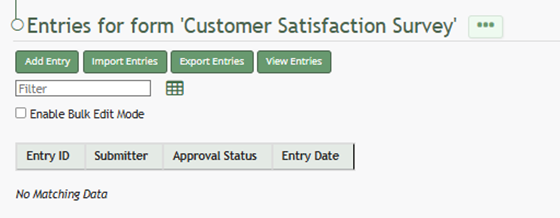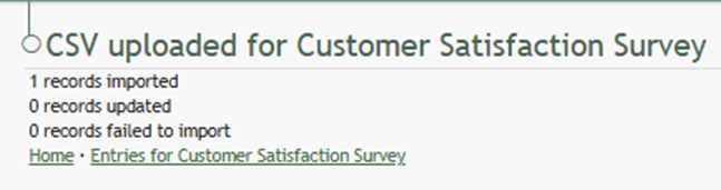 Click the “Entries for (FORM NAME)” link to see all imported entries on the Manage Entries Page.
