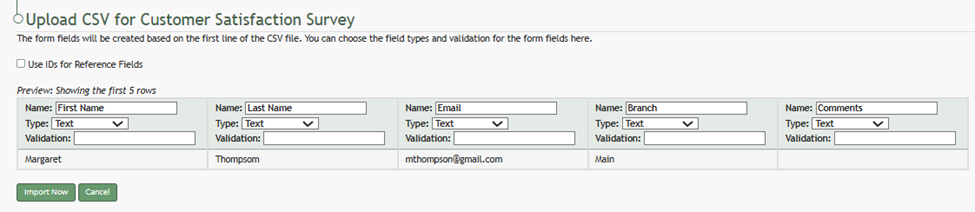 The system automatically indicates to ignore the first row. Click “Import Now” if there are no errors.
