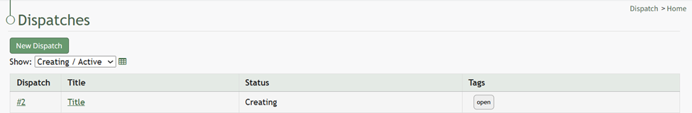 To indicate there was a dispatch incident, go to the Home Page of the Dispatch Module. Click the ID or Title of the specific dispatch you need to indicate an incident for.
