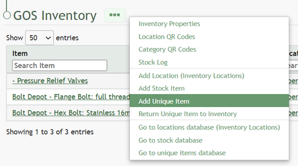 Select “Add Unique Item” opening the New Database Entry Modal.